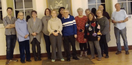 Members of Hunts Writers who attended the meeting of December 2025:             L to R – Max, Evie, Mary, Emma, Jo, Elizabeth, David, Alice, Maria, Angie, Sally, Nev and John S.